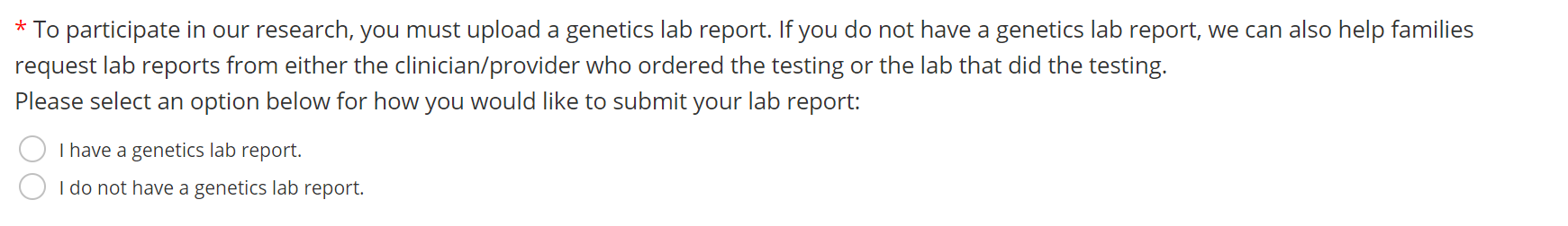 If you don’t have a copy of your or your child’s genetic lab report, our FAQ page provides detailed guidance, including instructions and tips, to help you request the original document.