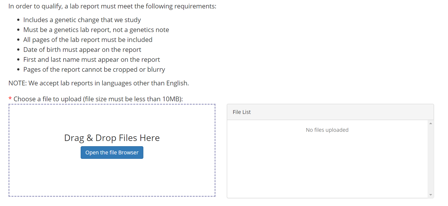 - Upload your genetic lab report that provides the detail on your genetic disorder.