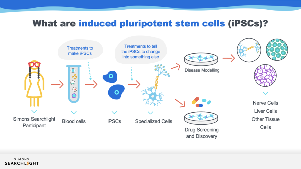 Genetic variants to create iPSCs for, are chosen based on blood sample availability, active participation in Simons Searchlight, SFARI scientific priorities, researcher interest and patient advocacy group leader feedback.