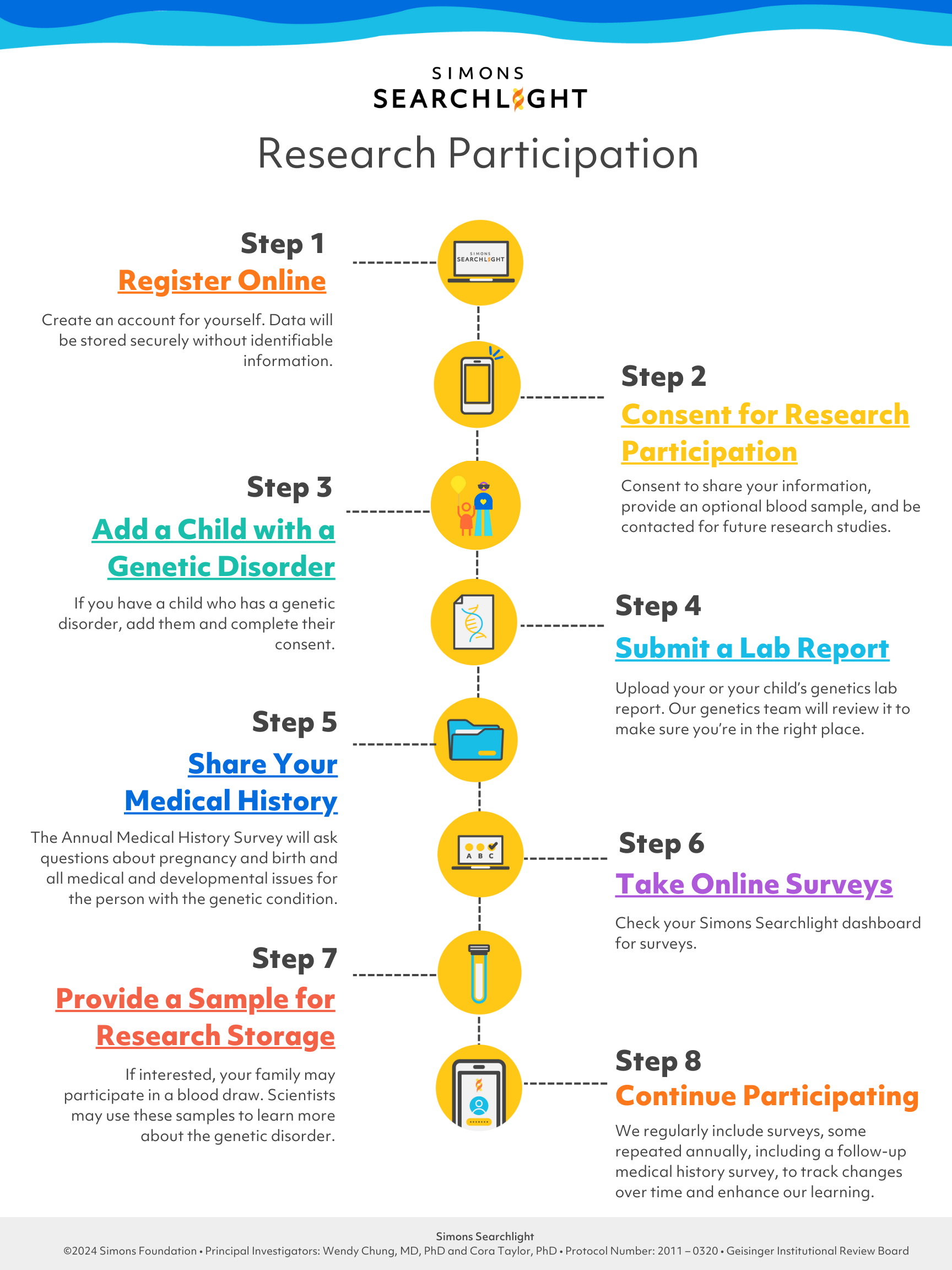 Additionally, review the study brochure to get a detailed overview of Simons Searchlight and how we support families and researchers.