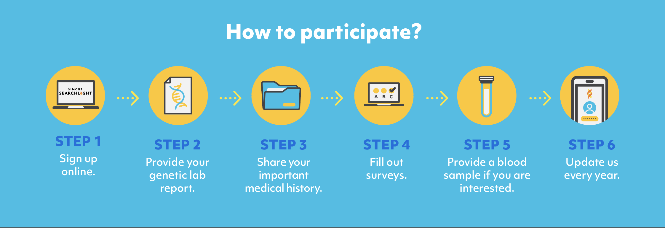 Outreach materials will be updated on an ongoing basis. When there is an update, we will notify you of the Simons Searchlight monthly email update and Simons Searchlight quarterly participant newsletter.