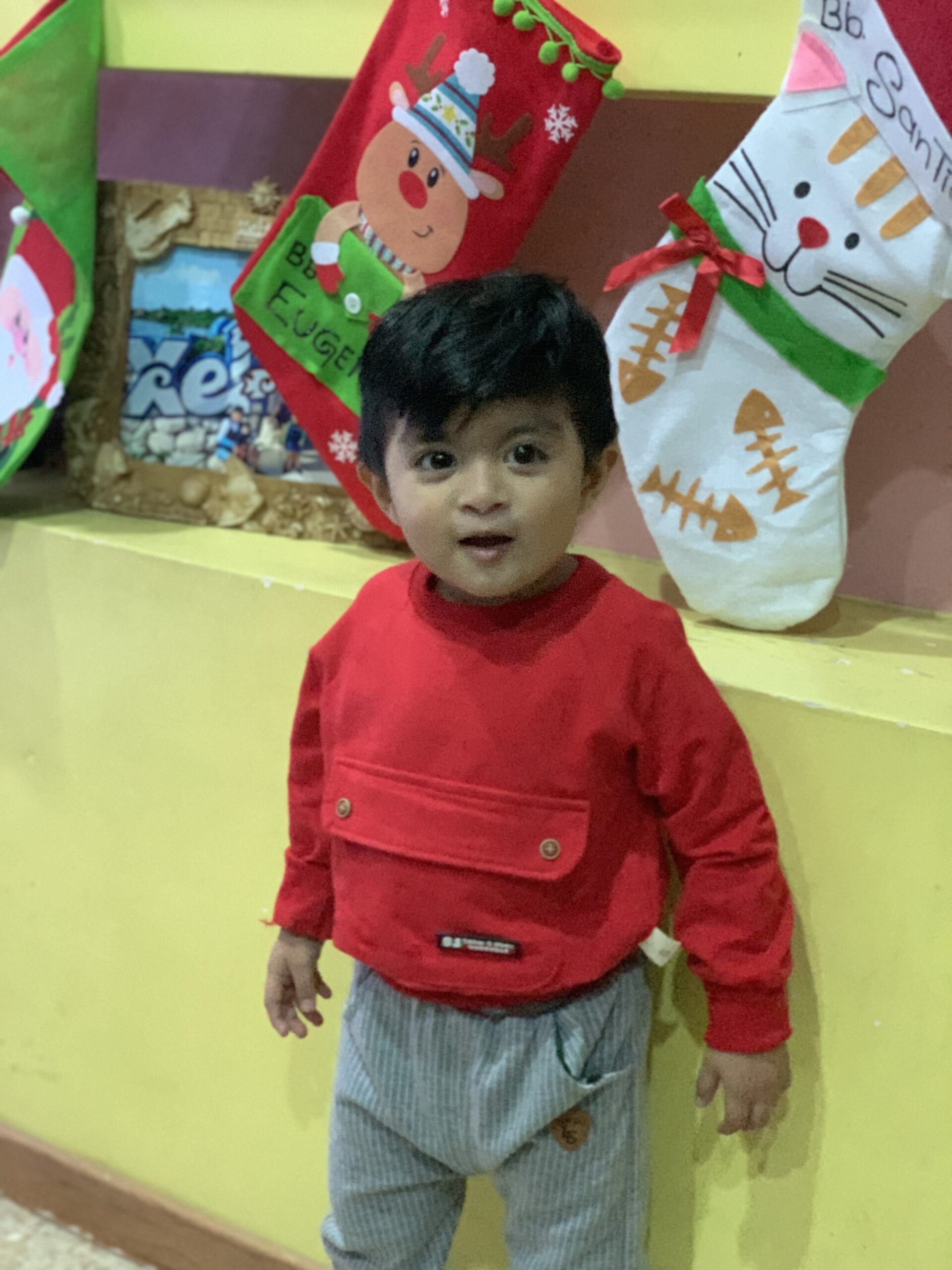 Somos una familia de 4, Eugenio es el más pequeño, notamos un retraso en su desarrollo a los 12 meses, ya que no camino, por medio de terapia lo logro a los 18 meses, iniciamos este camino porque el no hablaba, y con dos años y meses llego el diagnostico MEDl13.