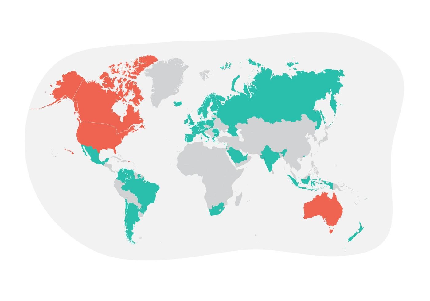Simons Searchlight’s first participants were from the USA, Canada, and Australia (orange). We now have participants from 47 different countries (turquoise).